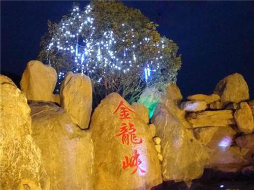 陜西蘭光戶外照明有限公司為西安市金龍峽景區設計安裝的噴泉亮化工程效果展示照片